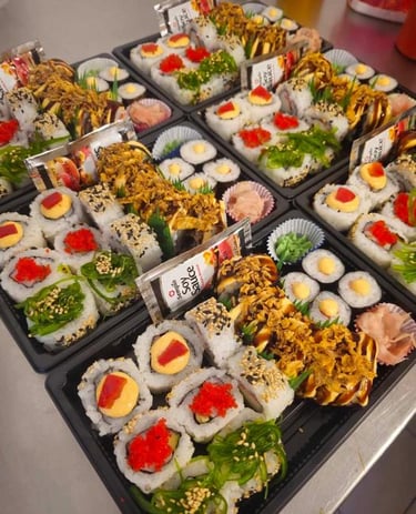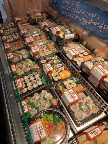 Isprobajte naš svježi sushi, trenutno dostupan u Intersparu i Sparu na području Dalmacije, Rijeke i Zagreba. Naša bogata ponuda svakodnevno se ažurira, pružajući vam najkvalitetnije proizvode. Pogledajte naš Menu i istražite raznovrsnost naših jedinstvenih sushi kreacija, prilagođenih različitim ukusima. Prepustite se okusima i otkrijte svoje nove omiljene delicije.